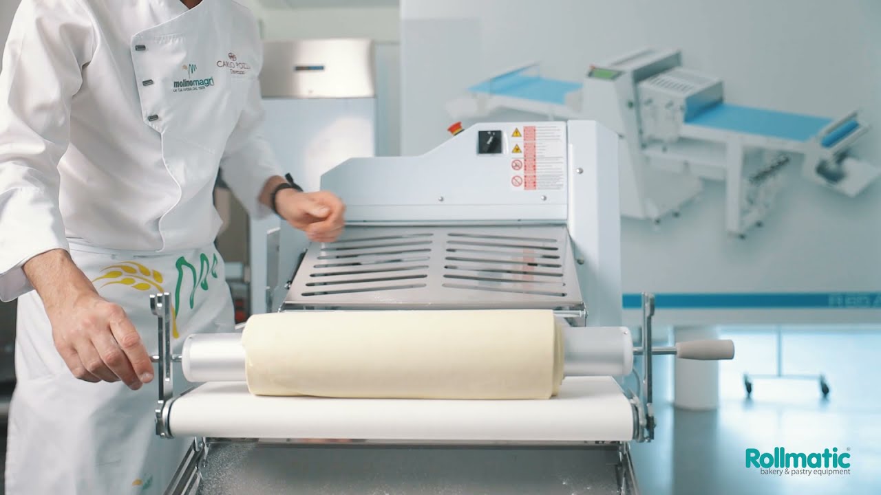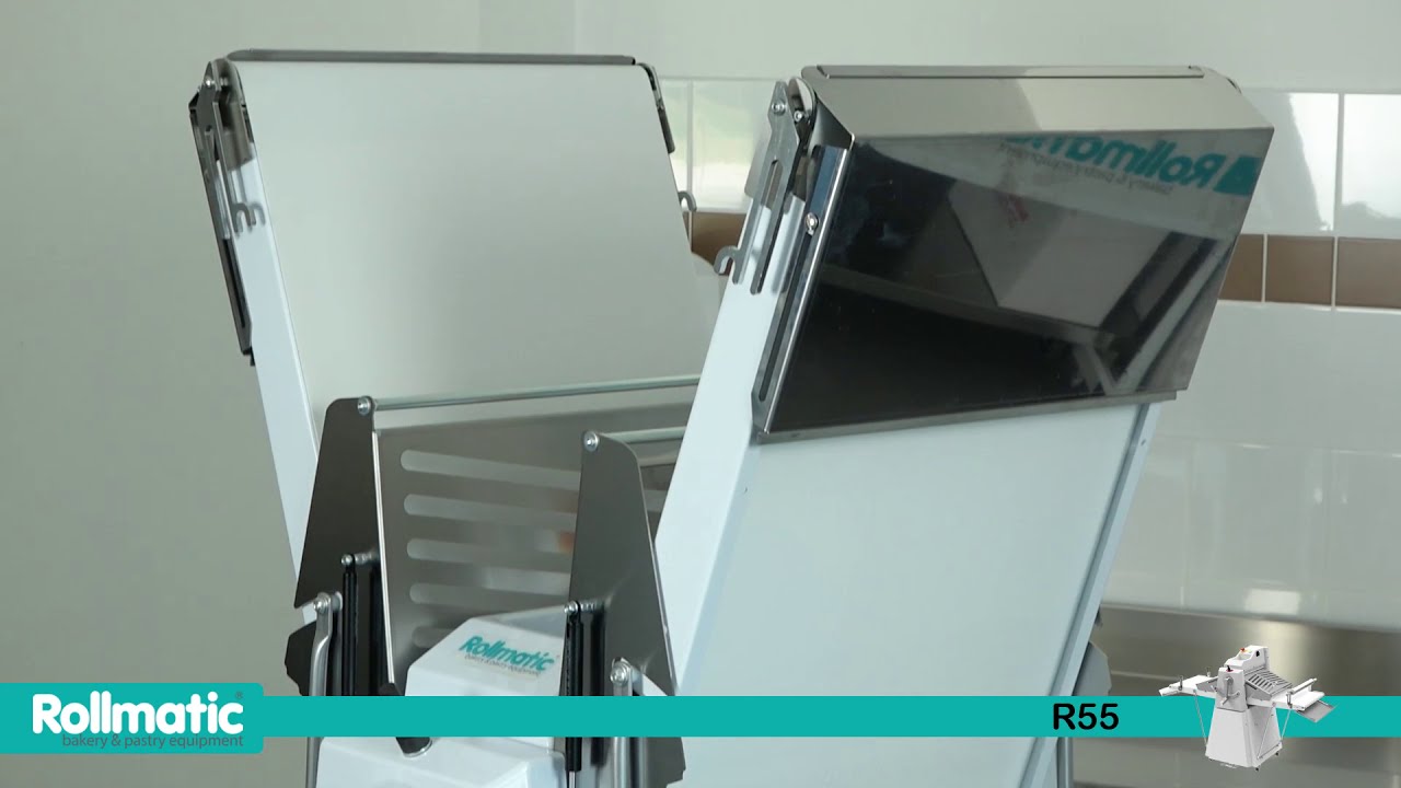 Compact sheeter with foldable and extractable tables. Available in the following models: with base or trolley. Work cycle inversion with joy-stick and foot control (option), stainless steel cylinder guards with safety microswitch and gas spring.